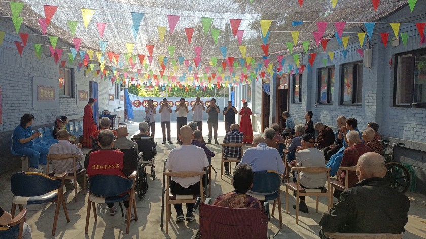 忆峥嵘岁月,看今朝辉煌。立时代潮头,颂时代新风。为庆祝中国共产党成立103周年,7月2日我们邀请了声韵艺术团前来为老人们助兴。一群可爱的人冒着炎热带着汗珠,走进了我们老年公寓,为这个入夏的午后注入了满满的活力,这些来自声韵艺术团老师们的到来,一解夏日的闷热和烦躁,为我们老年公寓的长者们送来了一场精彩的演出。
