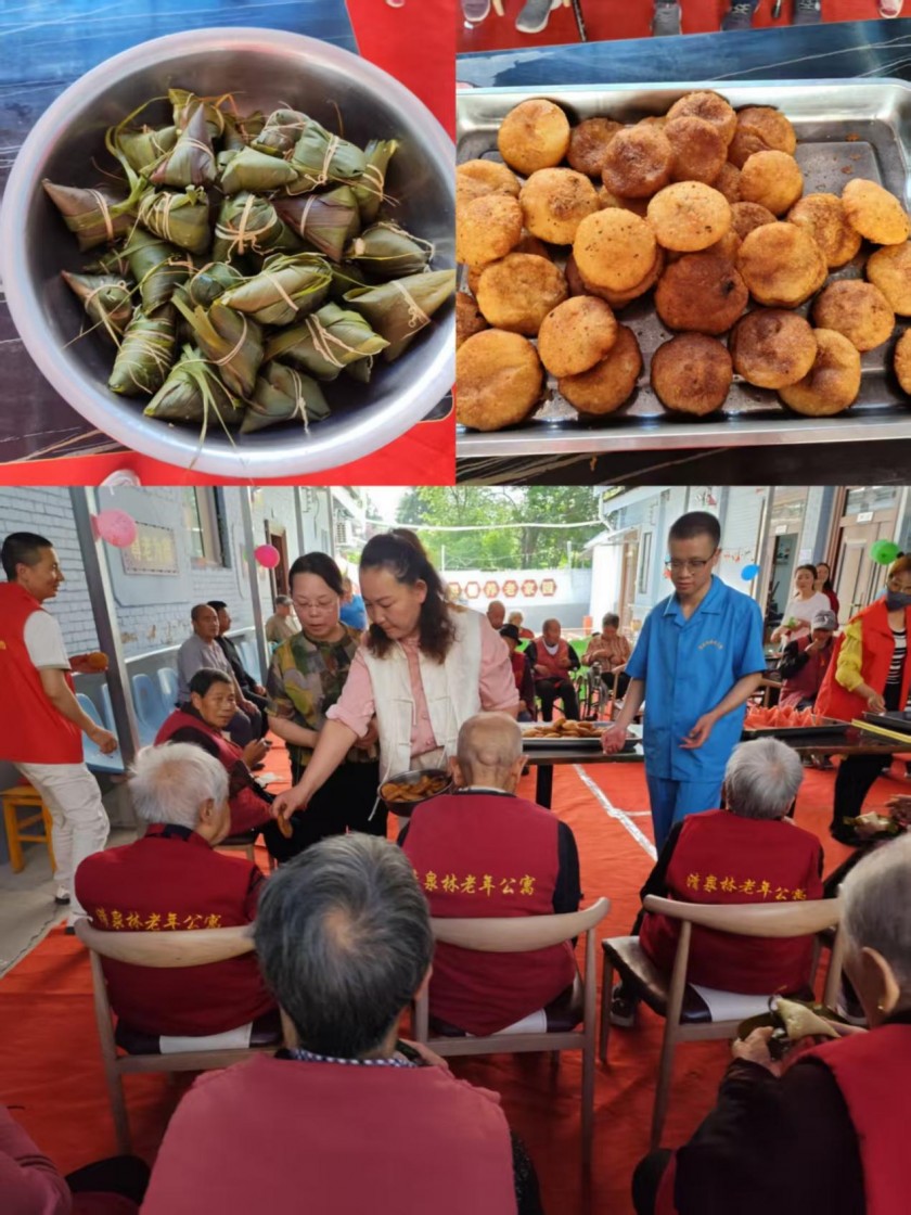 文艺汇演结束后,清泉林养老院刘院长和社区干部把热气腾腾的粽子和糖糕送到老人跟前,为老人们送上节日的祝福和关爱。老人们不仅享受到了美味的粽子,还感受到了浓厚的节日氛围和家的温暖。我们希望通过这样的活动,让每一位老人感受到关爱和温暖,度过一个愉快而难忘的节日。 通过此次端午活动,营造了良好的节日氛围,将温暖、爱心、快乐送到老人间,将尊老、爱老、敬老、助老的传统文化落到实处。